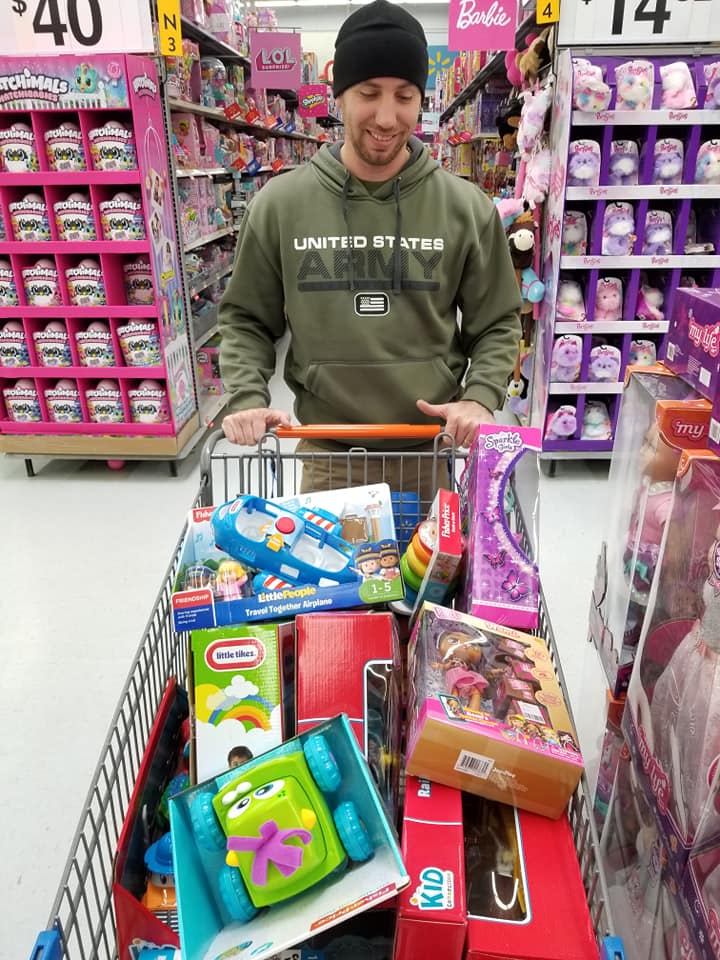 The day after Thanksgiving 2018, Nancy’s Toy Drop founder, Dave Pollard, and his mother filled a shopping cart full of toys for the “Stuff the Police Cruiser” toy drive. He only intended to buy a few items, but just couldn’t help himself! The next year, he and his mother filled TWO shopping carts full of toys. It brought him such joy looking forward to that shopping experience each year – and the moment of hand-off to the Police, knowing the gifts were going to children in need.